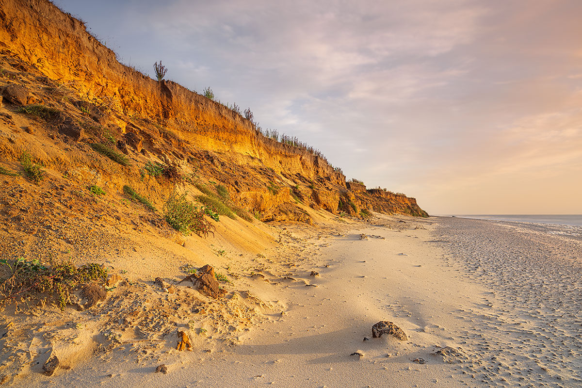 First light catching the wild cliffs at Covehithe, Suffolk, England