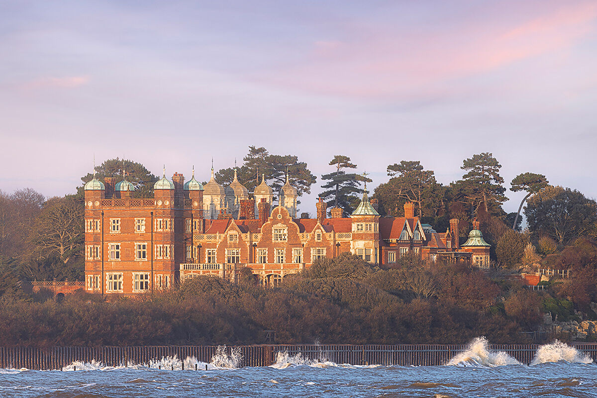 Bawdsey Manor shortly before sunset, viewed from Old Felixstowe, Suffolk, England